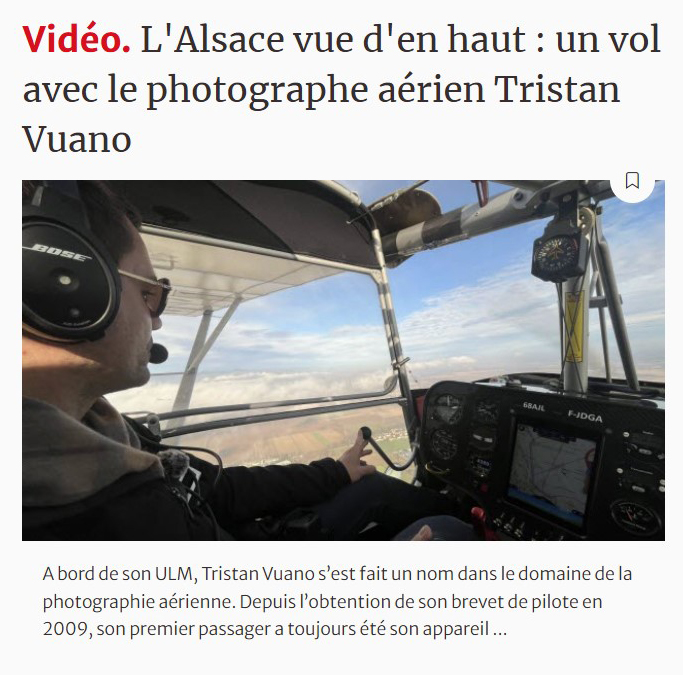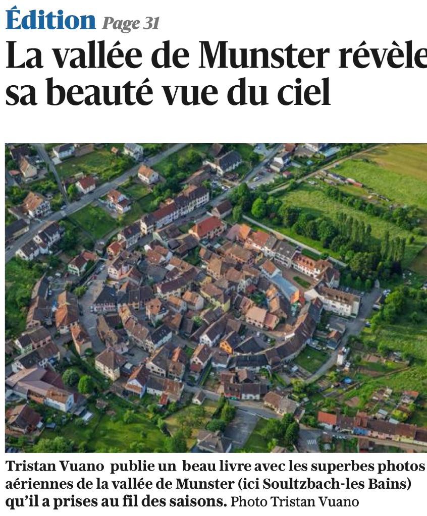 Tristan Vuano est un pilote de coucou passionné par sa région, l’Alsace, et par la photographie. Il aime partager la beauté et l’émotion que suscitent les paysages vus depuis le ciel. Sommets, forêts, prairies, vignes et villages se déclinent sur ses photographies dans toutes les couleurs et en toutes les saisons. Dans ce livre, il nous invite à découvrir depuis le ciel l’ensemble de la vallée de Munster, véritable carrefour aérien, de la plaine aux sommets, en passant par ses seize communes.