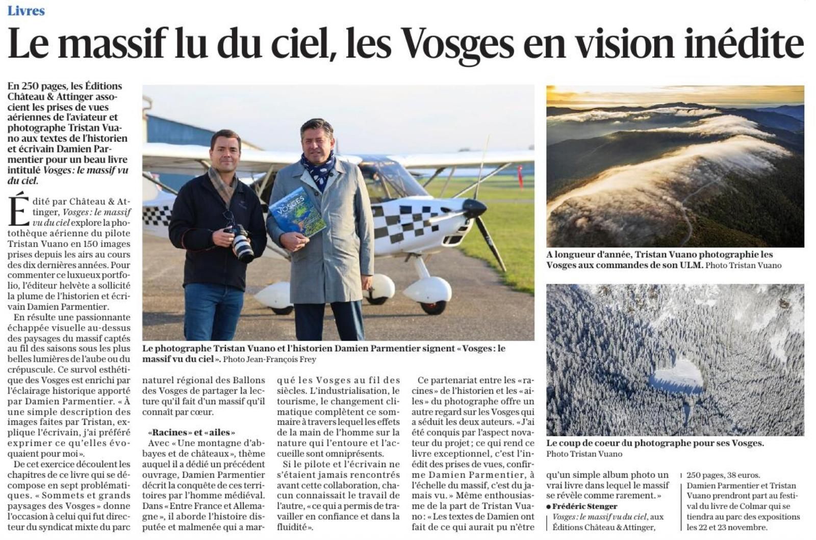 Le livre présenté ici veut faire prendre conscience au plus grand nombre de la valeur inestimable des montagnes des Vosges par le simple regard des photographies aériennes époustouflantes de Tristan Vuano et aussi par cette histoire commune construite par-delà les siècles et jusqu’à aujourd’hui !
